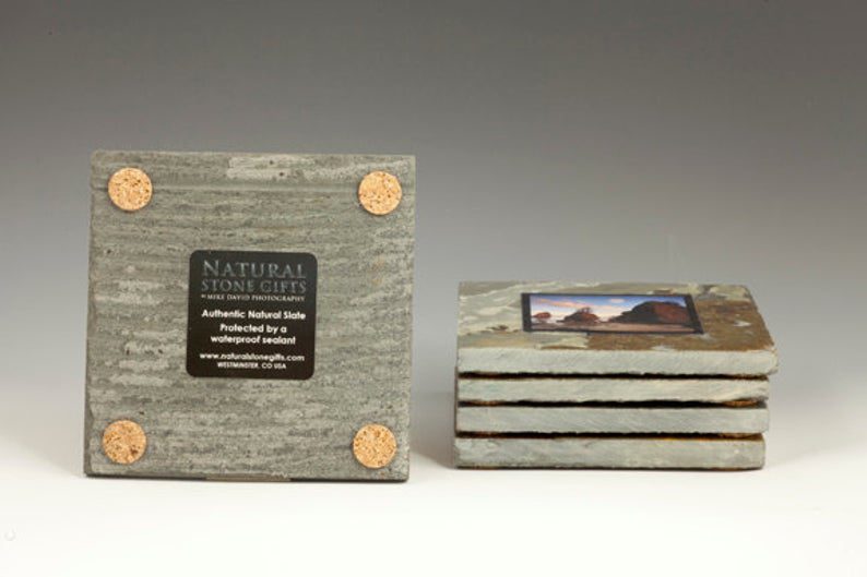 These beautiful coasters are 4 x 4 inches and are UV laminated and varnished for durability, set of 4. They are heat resistant and waterproof. Each slate is unique in color and texture. Choose from the following beautiful Colorado artwork. Colorado aspen leaf gift, Great hostess gift, housewarming gift!