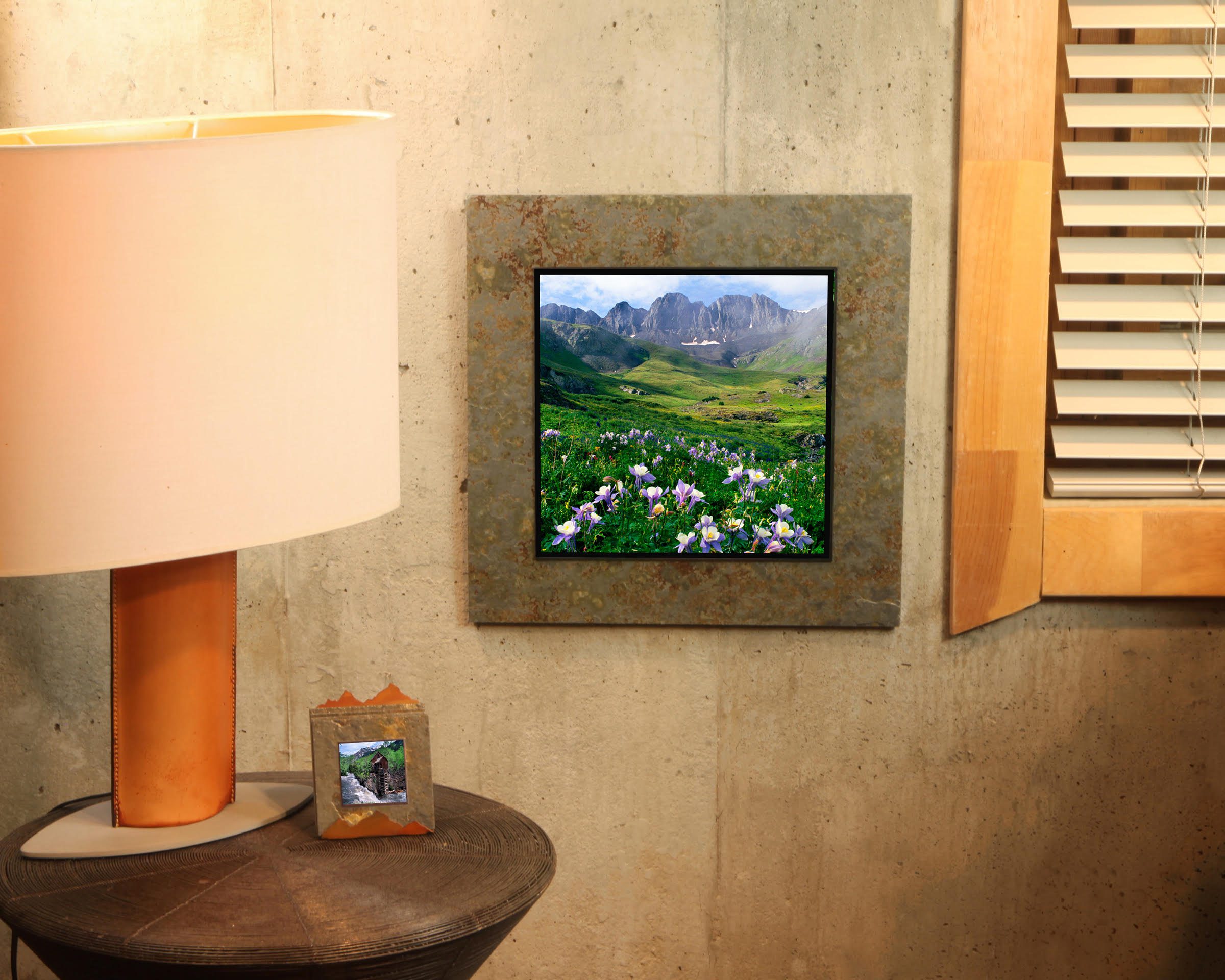 These beautiful photographs make an elegant focal point in any room! These unique slate mounted photographs are handmade using natural slate stone with fine art photography that capture the essence of Colorado. Since every piece of slate is different, the beautiful earth tones enhance the photography. This beautiful field of columbines makes your day! Available in 4 sizes, from desktop to wall hanging!